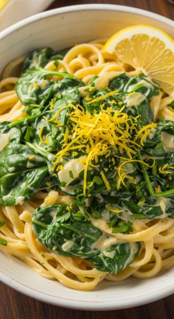 Bright, creamy lemon Alfredo with tender spinach — a zesty twist on a classic comfort favorite.