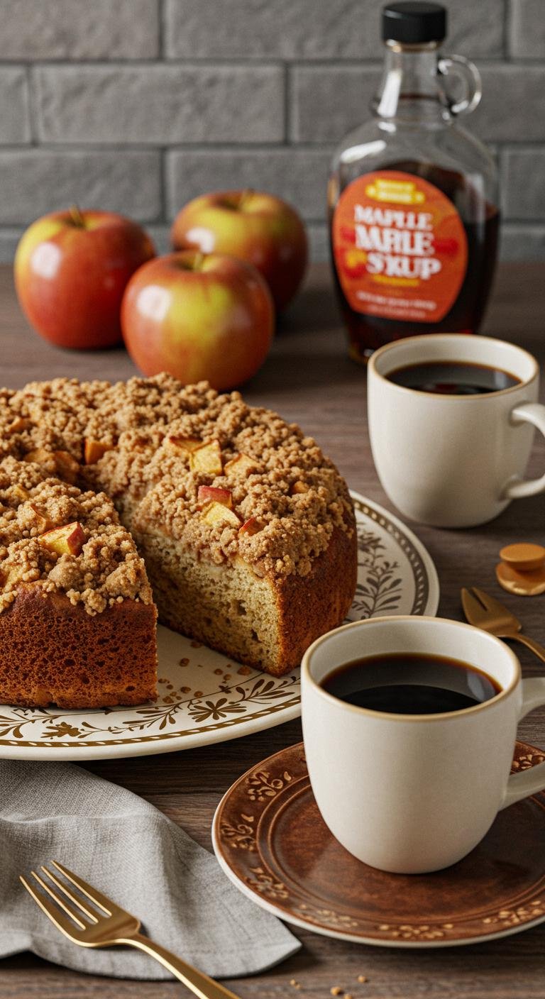 A cozy maple-streusel-topped apple cake that’s perfect with a cup of coffee or a warm hug.