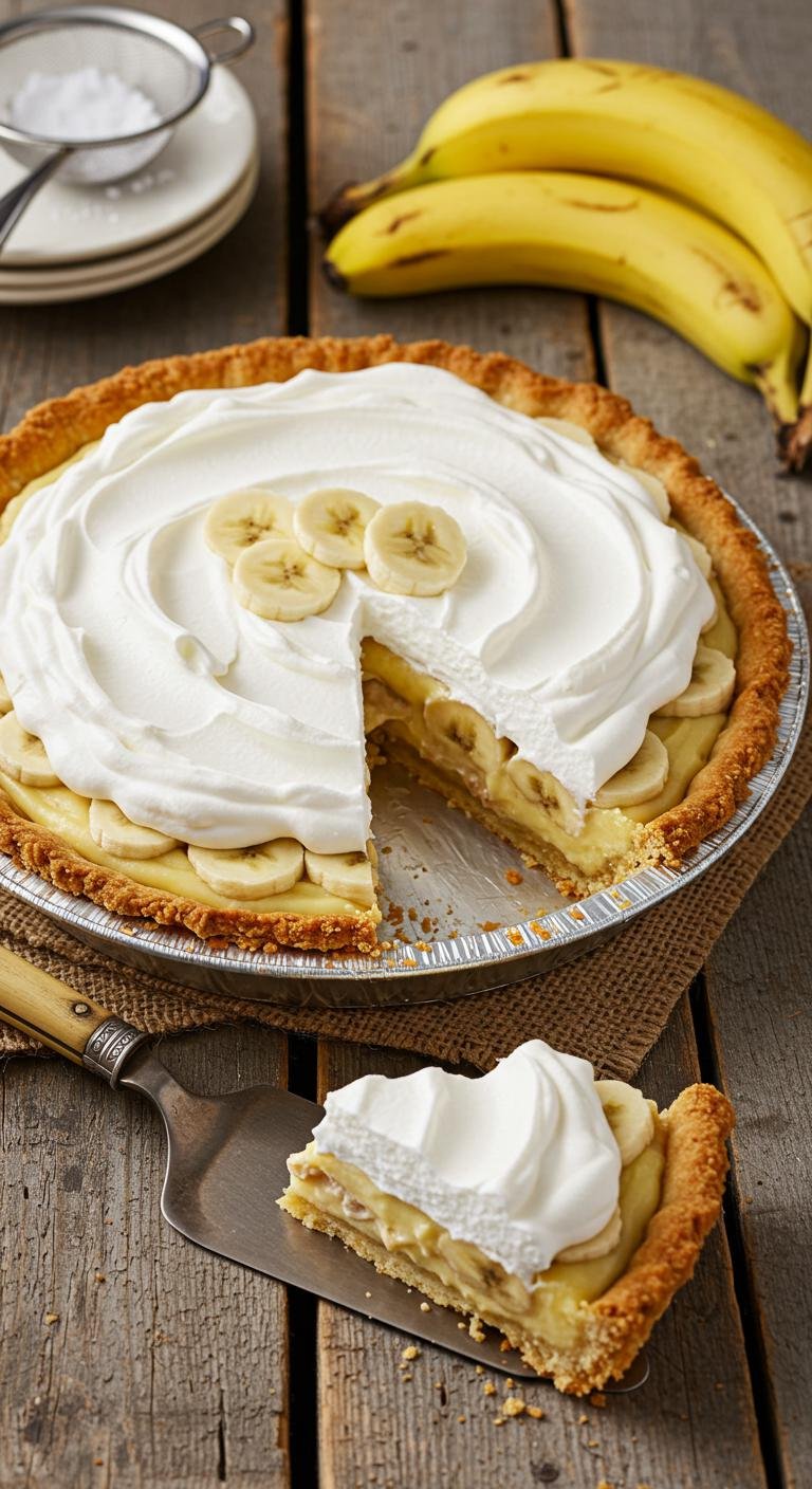 Creamy, comforting Southern banana cream pie just like grandma made — rich custard, ripe bananas, and a flaky crust.