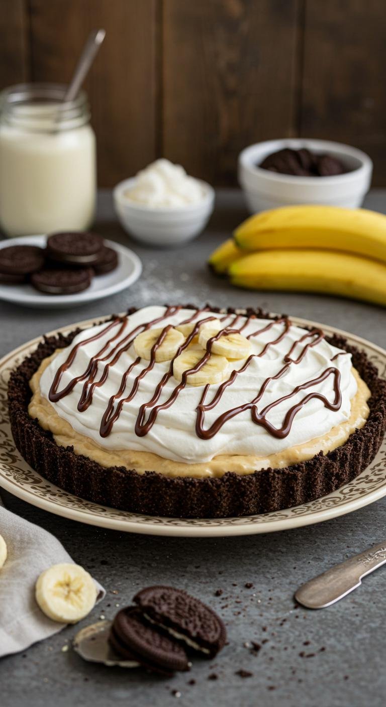 Chocolate-Drizzle Banana Cream Pie With Oreo Crust