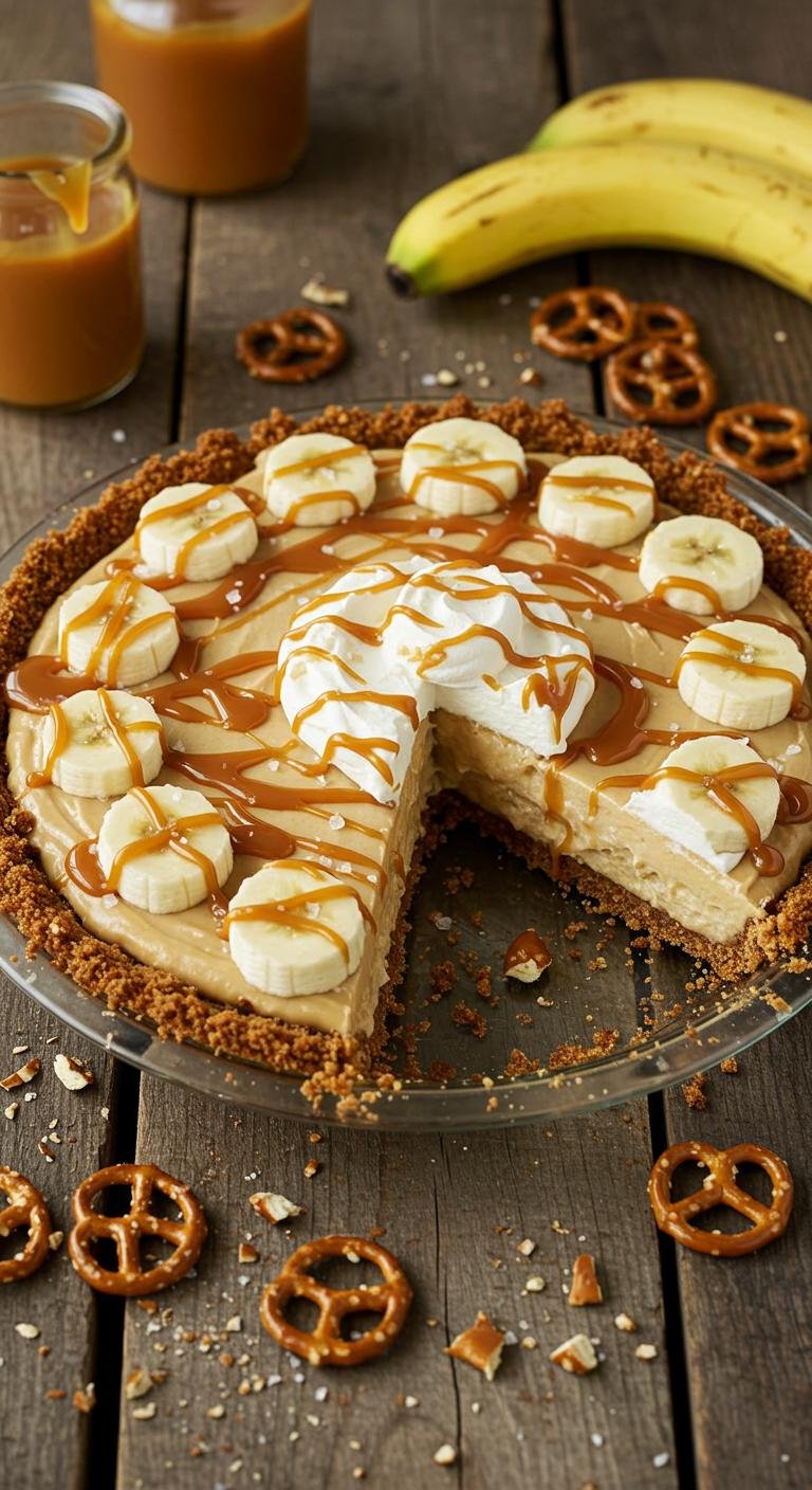 Salted Caramel Banana Cream Pie With Pretzel Crust