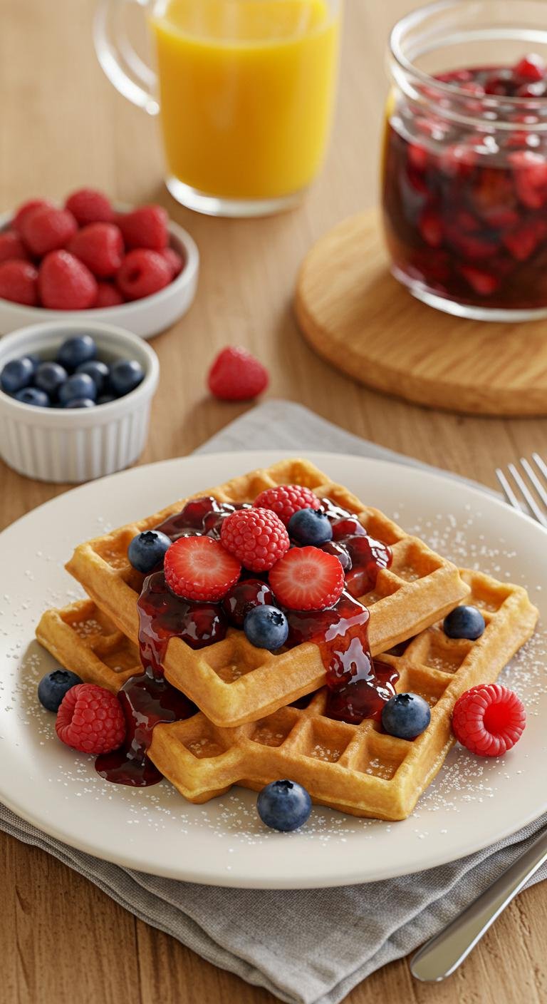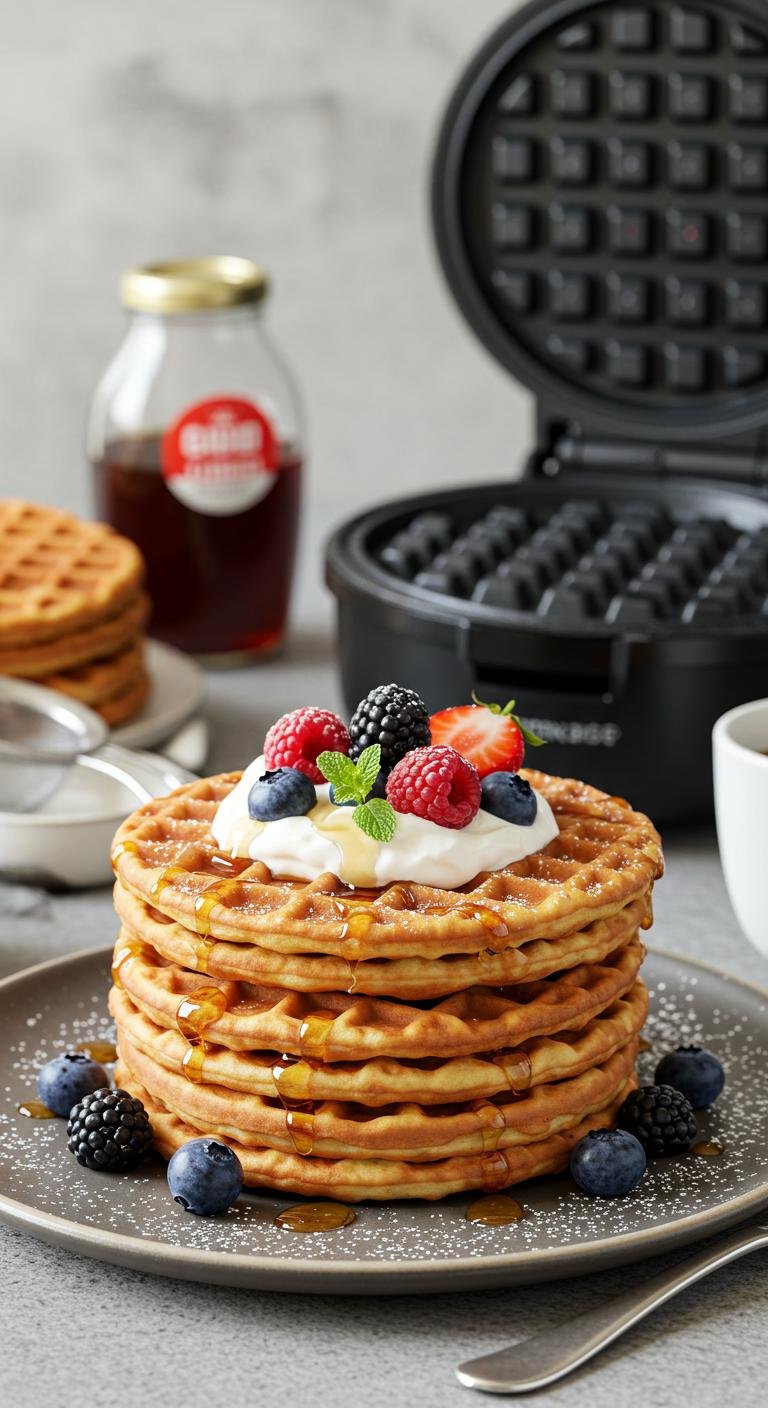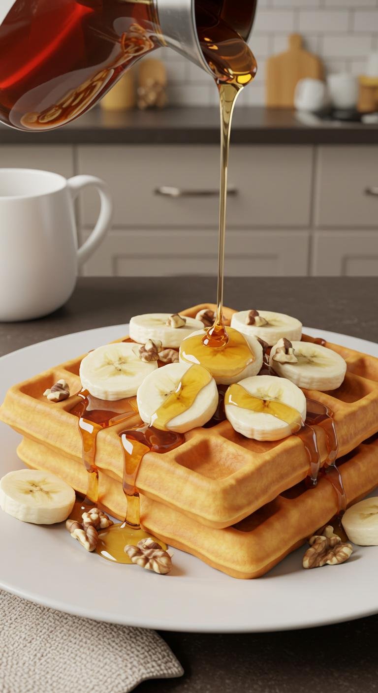 - Cook waffles until golden brown and crisp, following your waffle iron’s timing — usually 3–5 minutes.