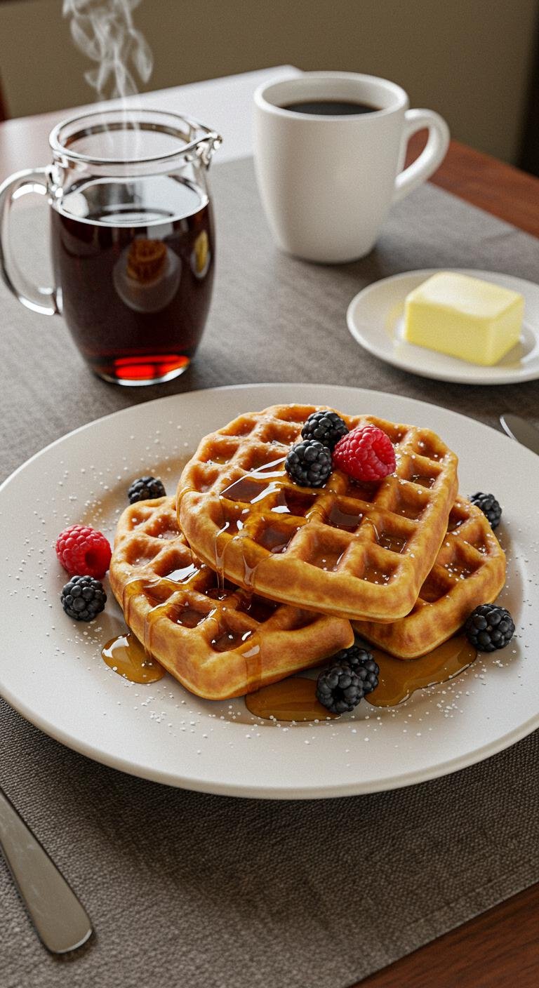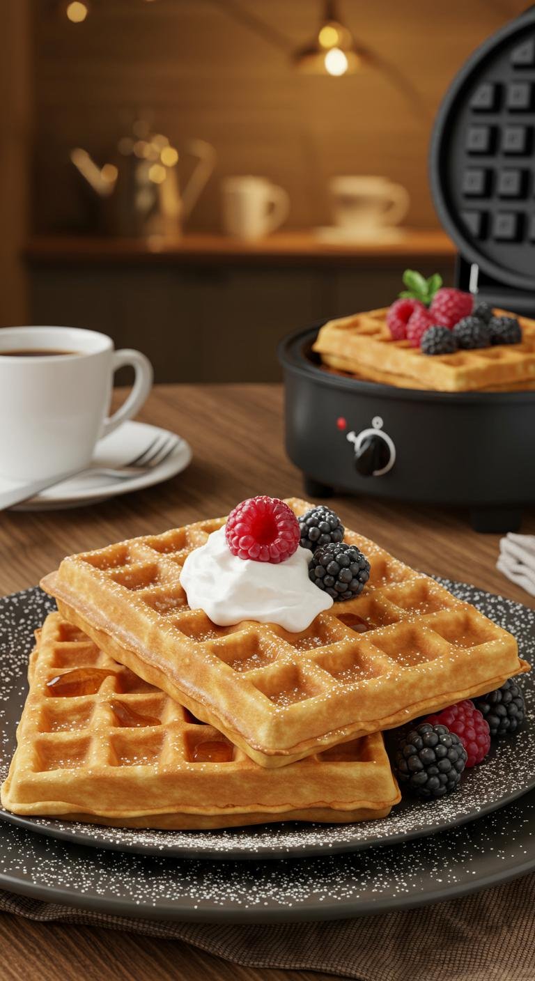 Light, puffy Brussels waffles with crisp golden edges — breakfast that feels like a café in your kitchen.