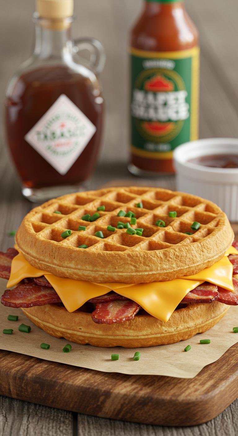 Bacon and Cheddar Belgian Waffle Sandwiches