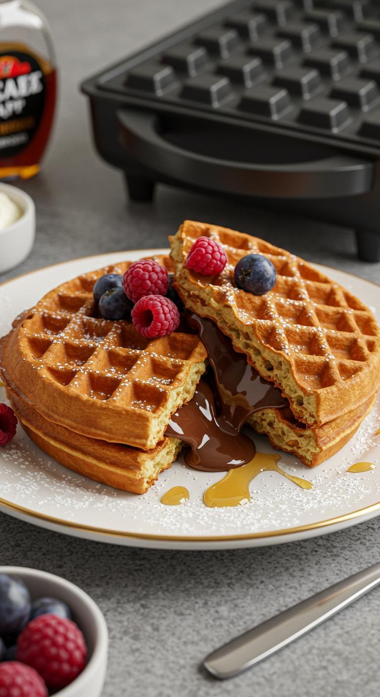 - Serve immediately so the waffles stay crisp and the Nutella stays gooey.