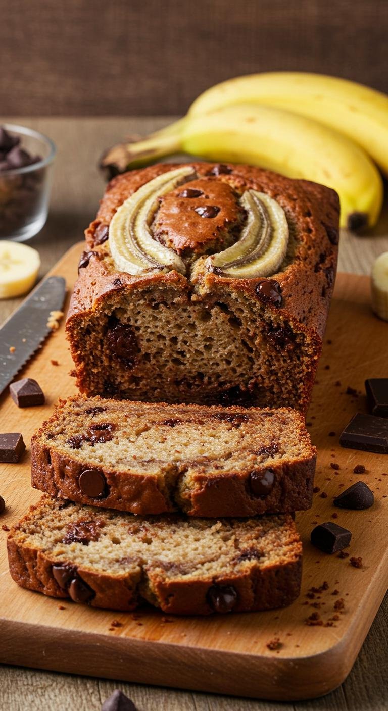 A chocolate-studded twist on a classic — moist, tender banana bread with melty chocolate chips in every bite.