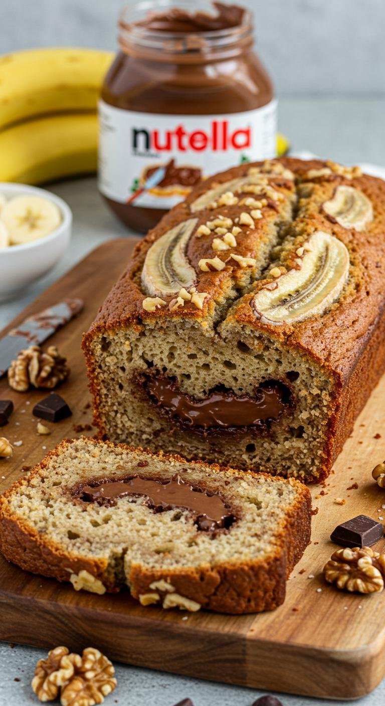 Nutella-Stuffed Banana Bread — a gooey, chocolatey surprise in every slice.