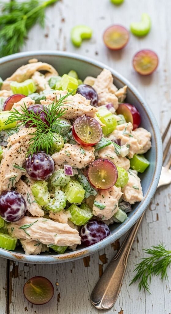 Enjoy this fresh, creamy chicken salad anytime — simple, satisfying, and full of bright herb flavor!