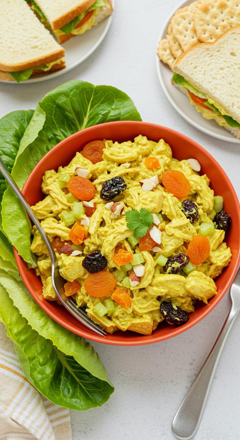 A bright, slightly sweet curried chicken salad studded with chewy dried apricots—perfect on sandwiches, greens, or eaten straight from the bowl.