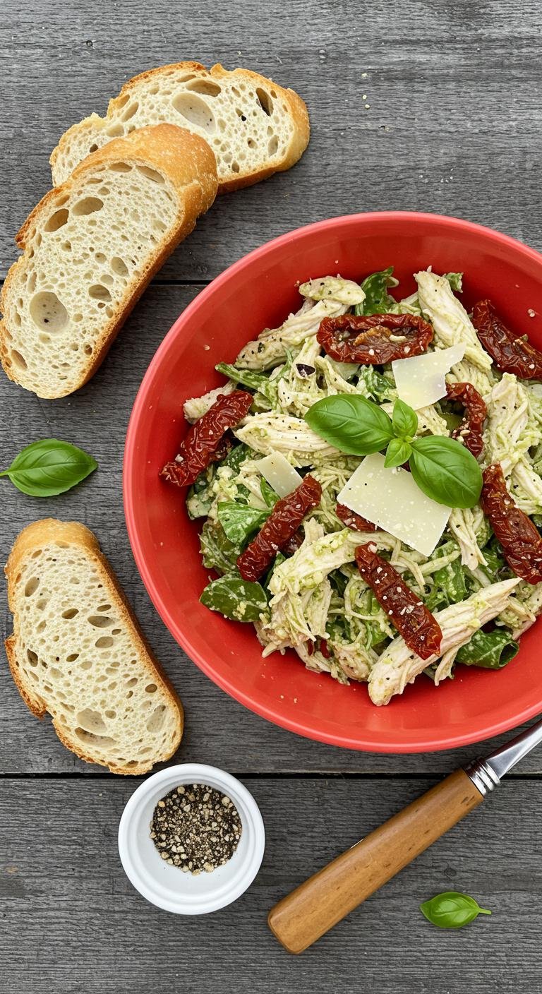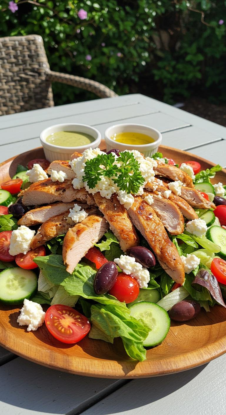 Bright, tangy, and full of Mediterranean sunshine — a satisfying chicken salad with olives, feta, and crisp veggies.