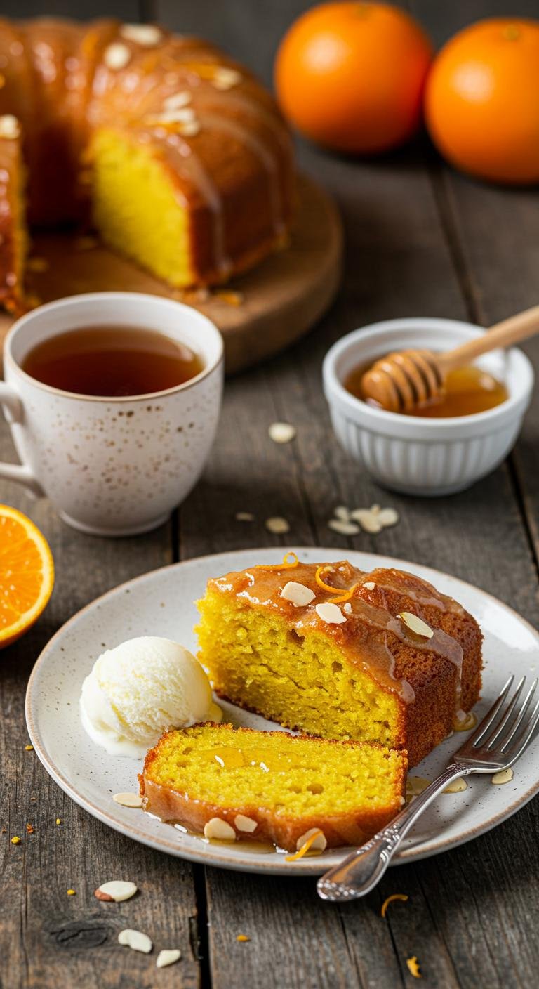 Bright, moist orange olive oil cake with a glossy honey glaze — simple, sunny comfort in every slice.
