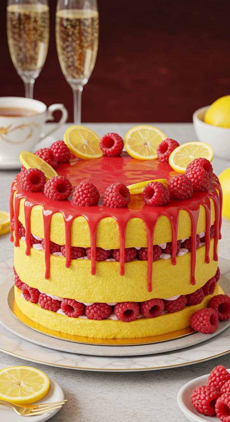 Bright, zesty lemon cake studded with fresh raspberries and a glossy raspberry drip—perfect for birthdays or any celebration.