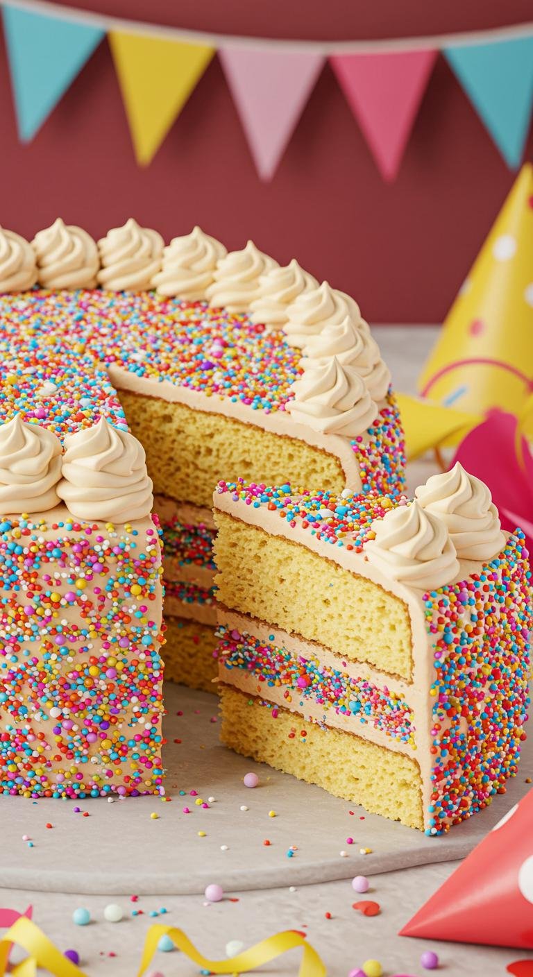 Enjoy a slice of this classic vanilla layer cake — simple, nostalgic, and always a crowd-pleaser!