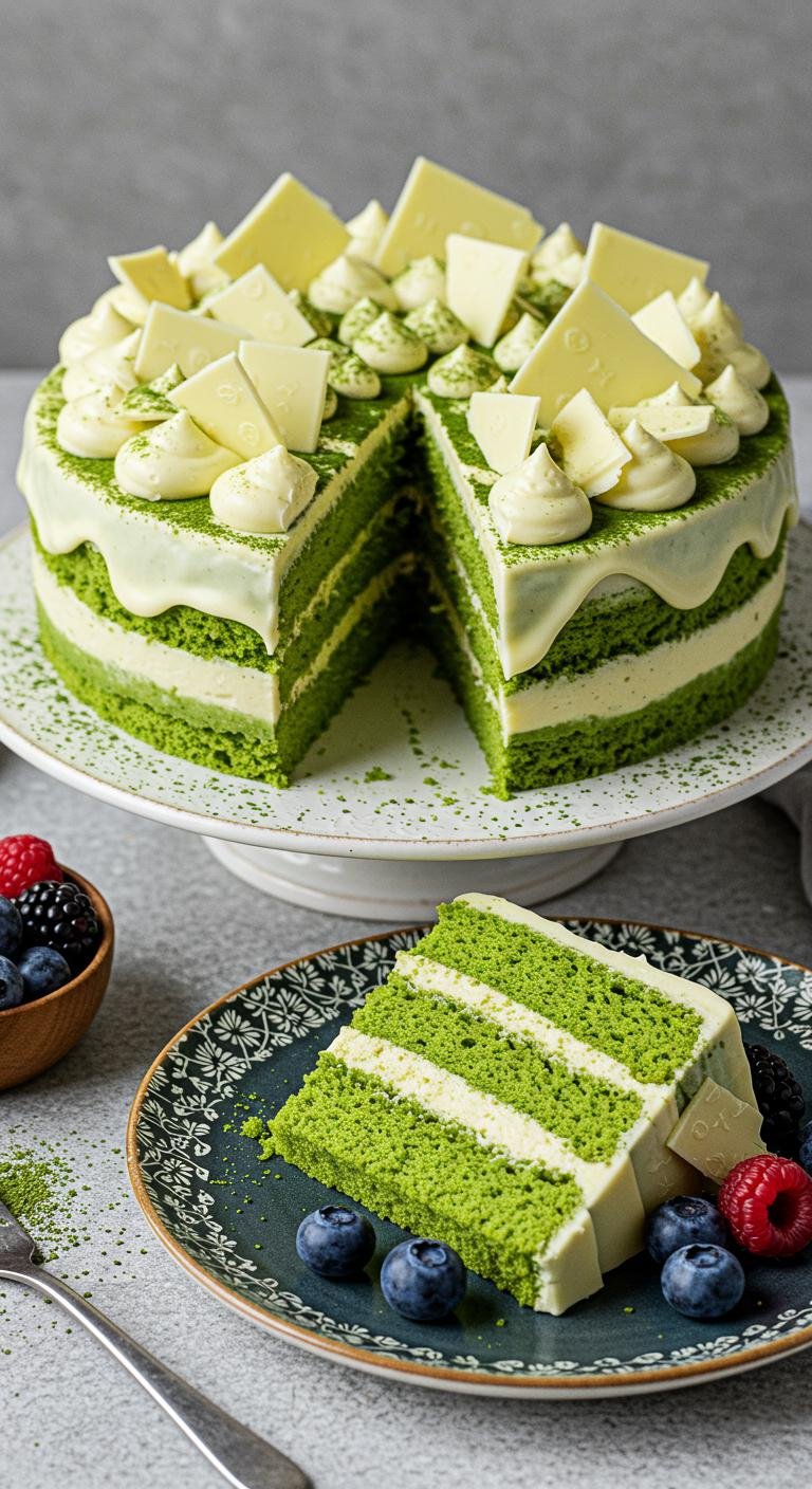 Bright, buttery layers meet earthy matcha and sweet white chocolate for a cake that’s as elegant as it’s comforting.