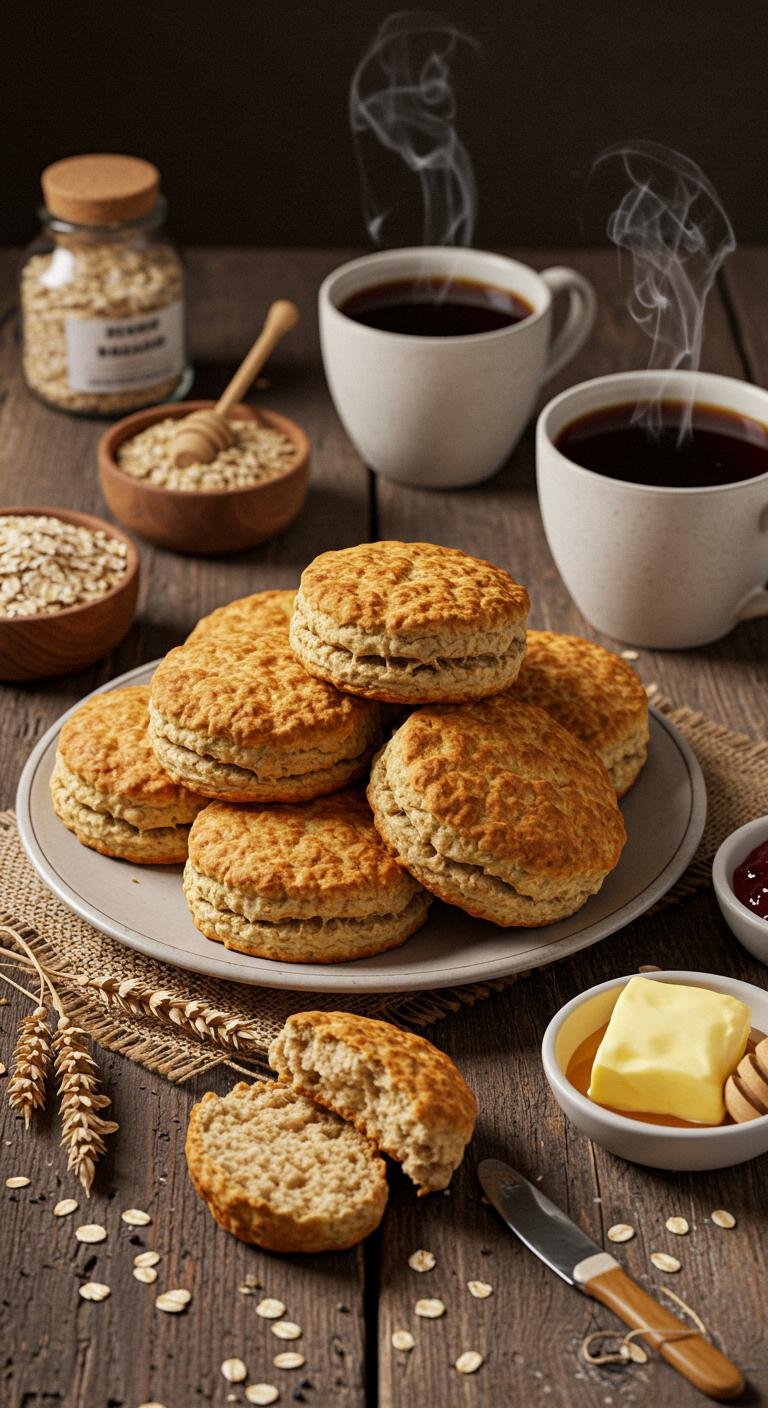 Serve these wholesome biscuits with butter, jam, or honey—perfect for breakfast or a cozy snack.