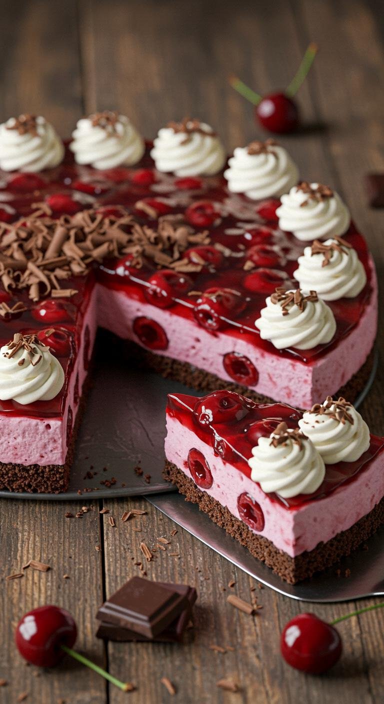 Slice and serve chilled — each bite is a perfect mix of boozy cherry, rich chocolate, and cloud-like cream. Enjoy!