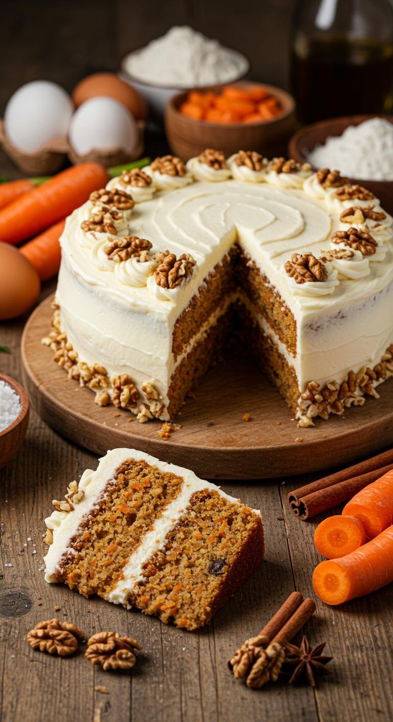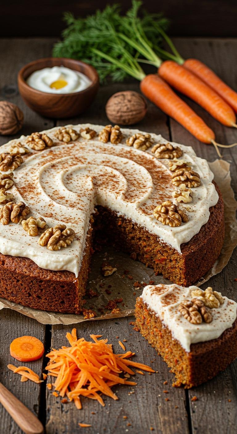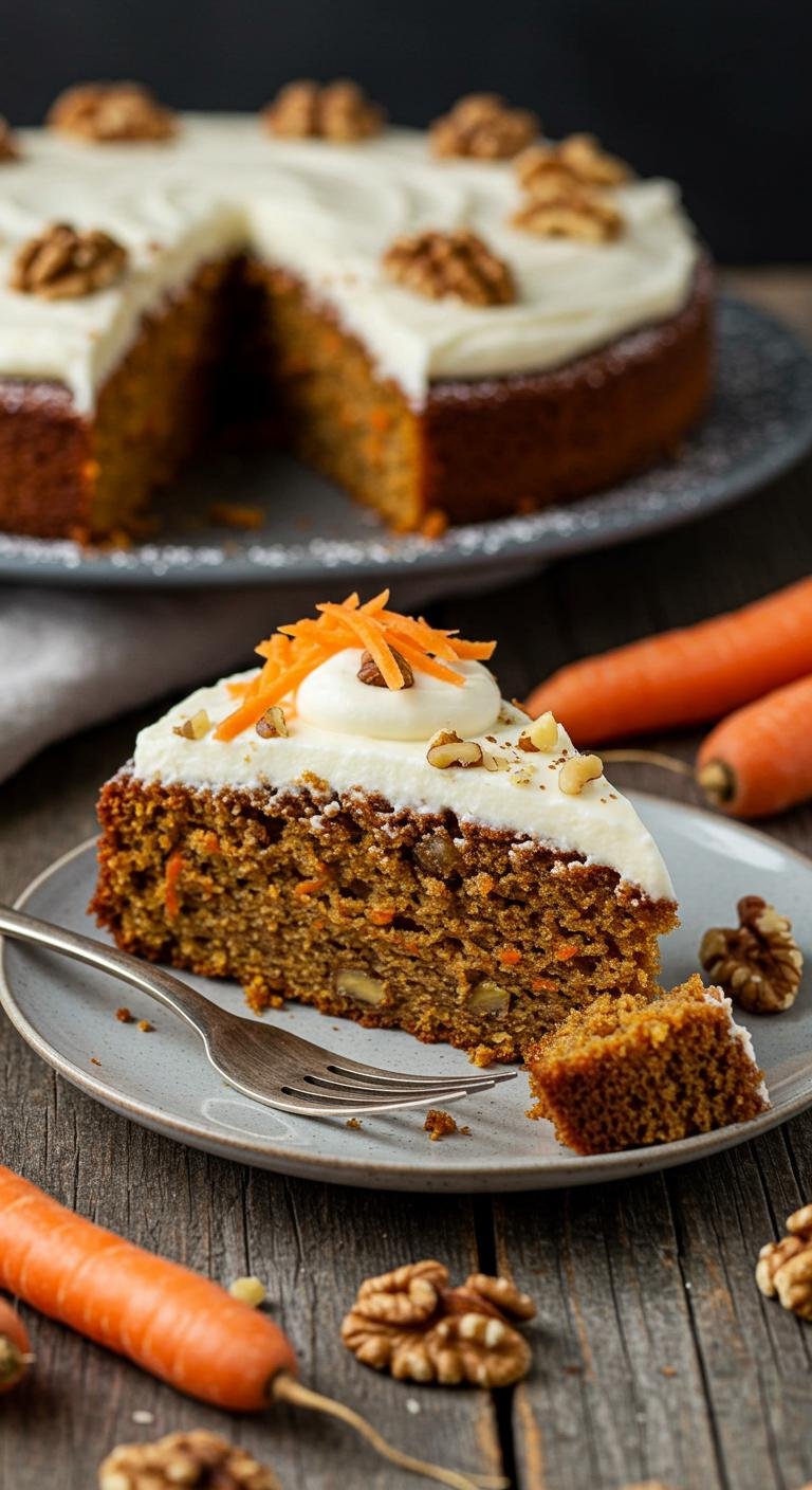 Enjoy a slice of this moist carrot cake—comforting, spiced, and perfect for any celebration!