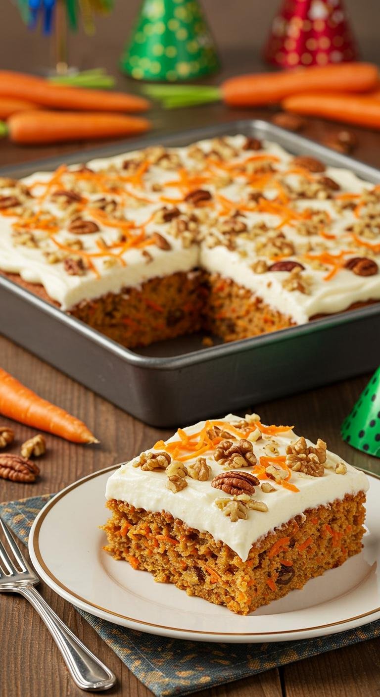 Enjoy this easy, crowd-pleasing carrot sheet cake — perfect for parties and potlucks!
