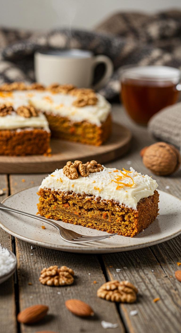 Enjoy a slice of this cozy, dairy-free carrot cake — perfect with coffee or a sunny afternoon.