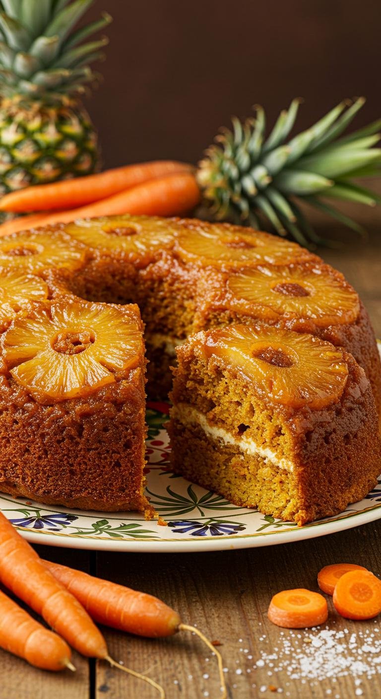 Bright, tropical twist on carrot cake — moist, spiced layers with pineapple sweetness and a caramelized upside-down finish.