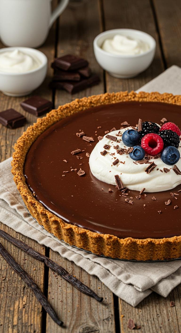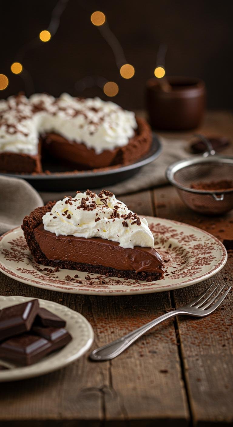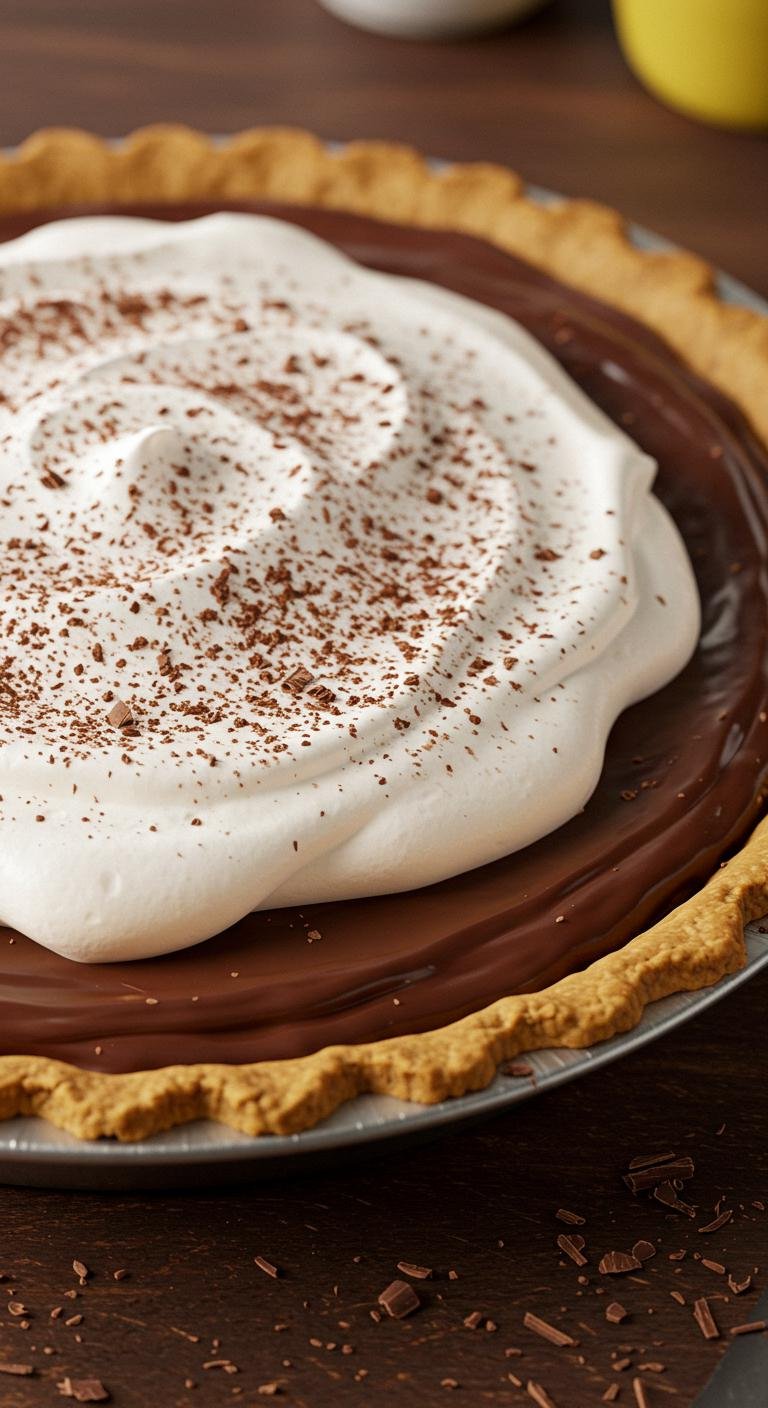 Silky, old-school chocolate cream pie — rich, creamy, and comfortingly nostalgic.