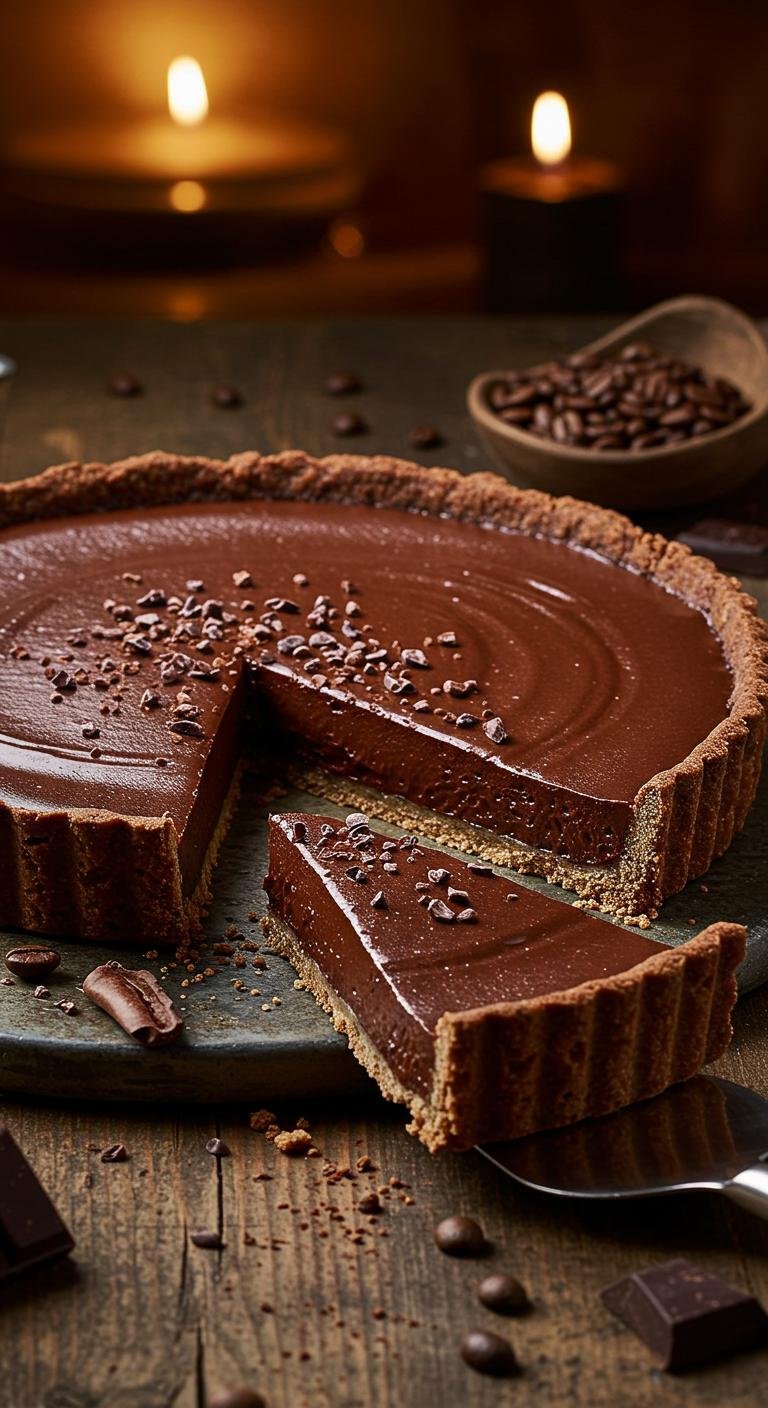 Decadent, intense dark chocolate tart with a hit of espresso — rich, silky, and dangerously easy to love.