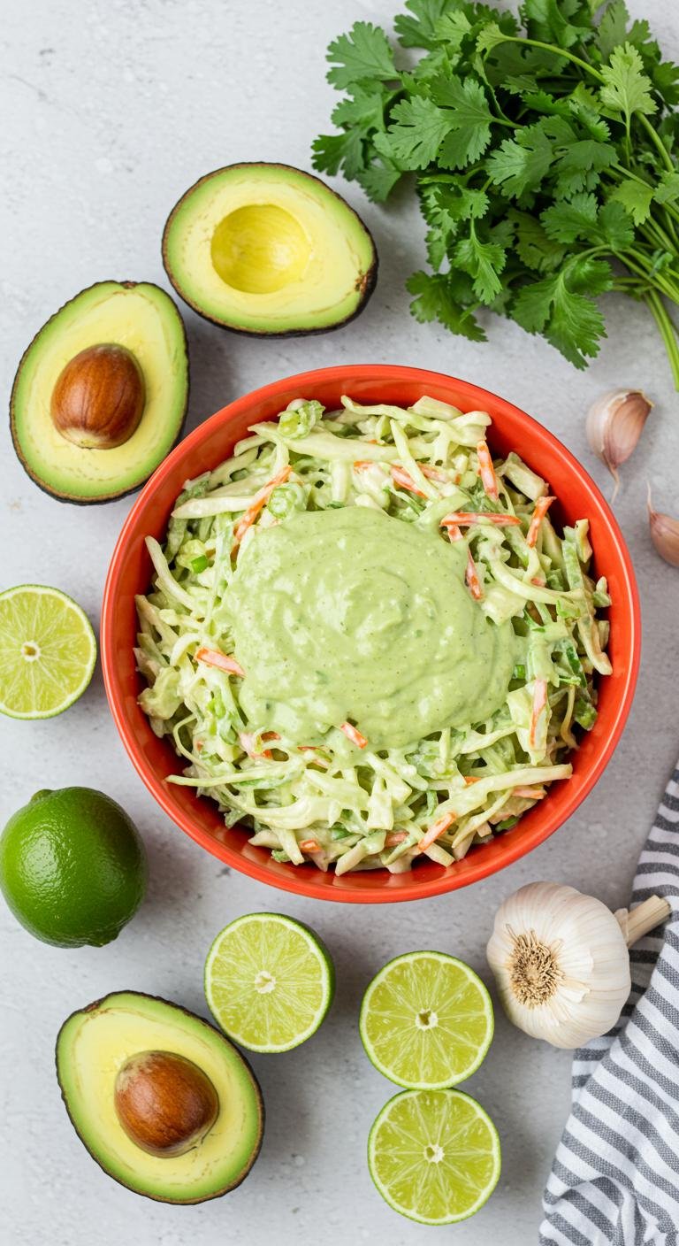 Bright, zesty, and creamy — this Avocado-Cilantro Lime Cream Dressing livens up any coleslaw in seconds.