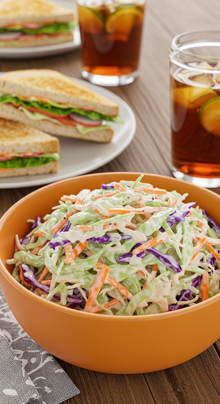 Crisp, creamy, and tangy—this classic coleslaw is the perfect crunchy side for BBQs, sandwiches, or any weeknight meal.