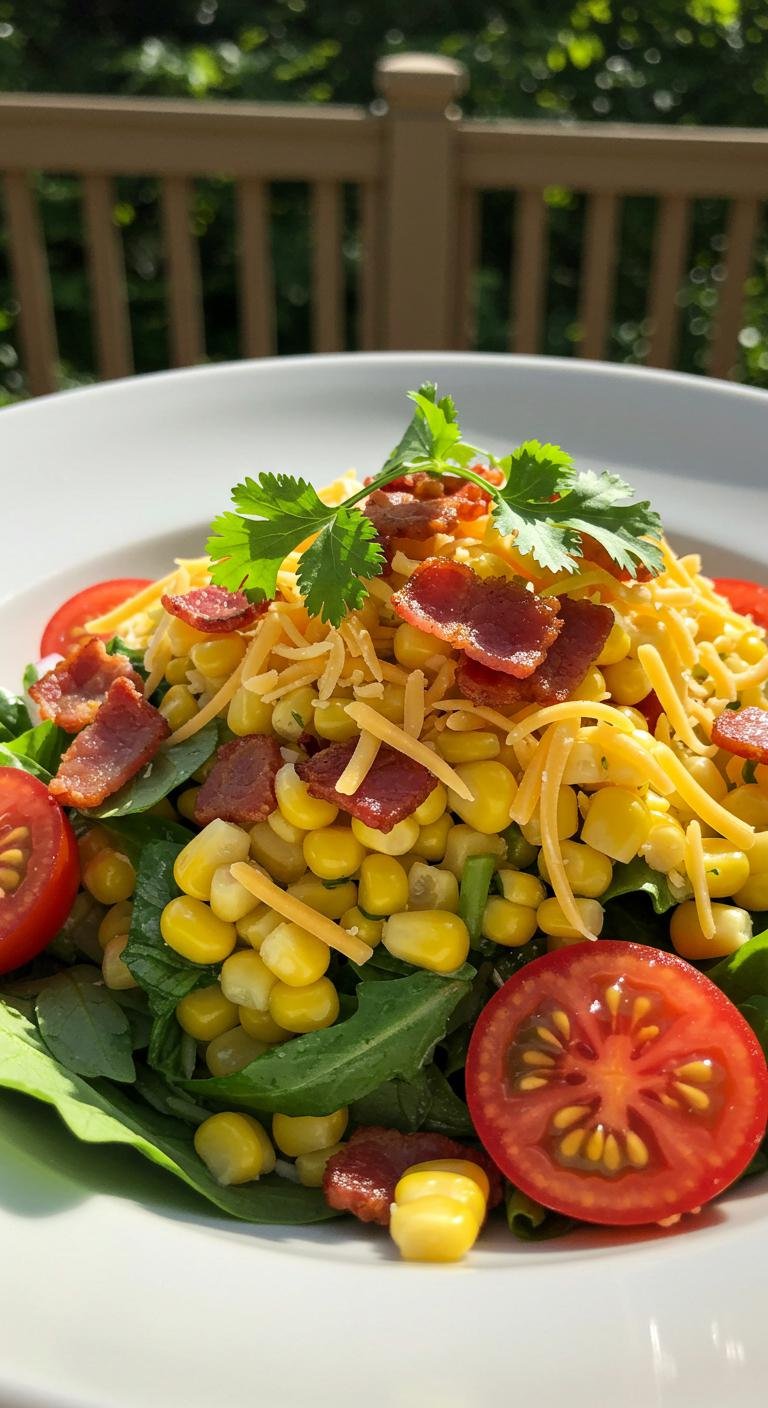 Bright, crunchy summer salad with sweet corn, smoky bacon, and melty cheddar — perfect for backyard meals.