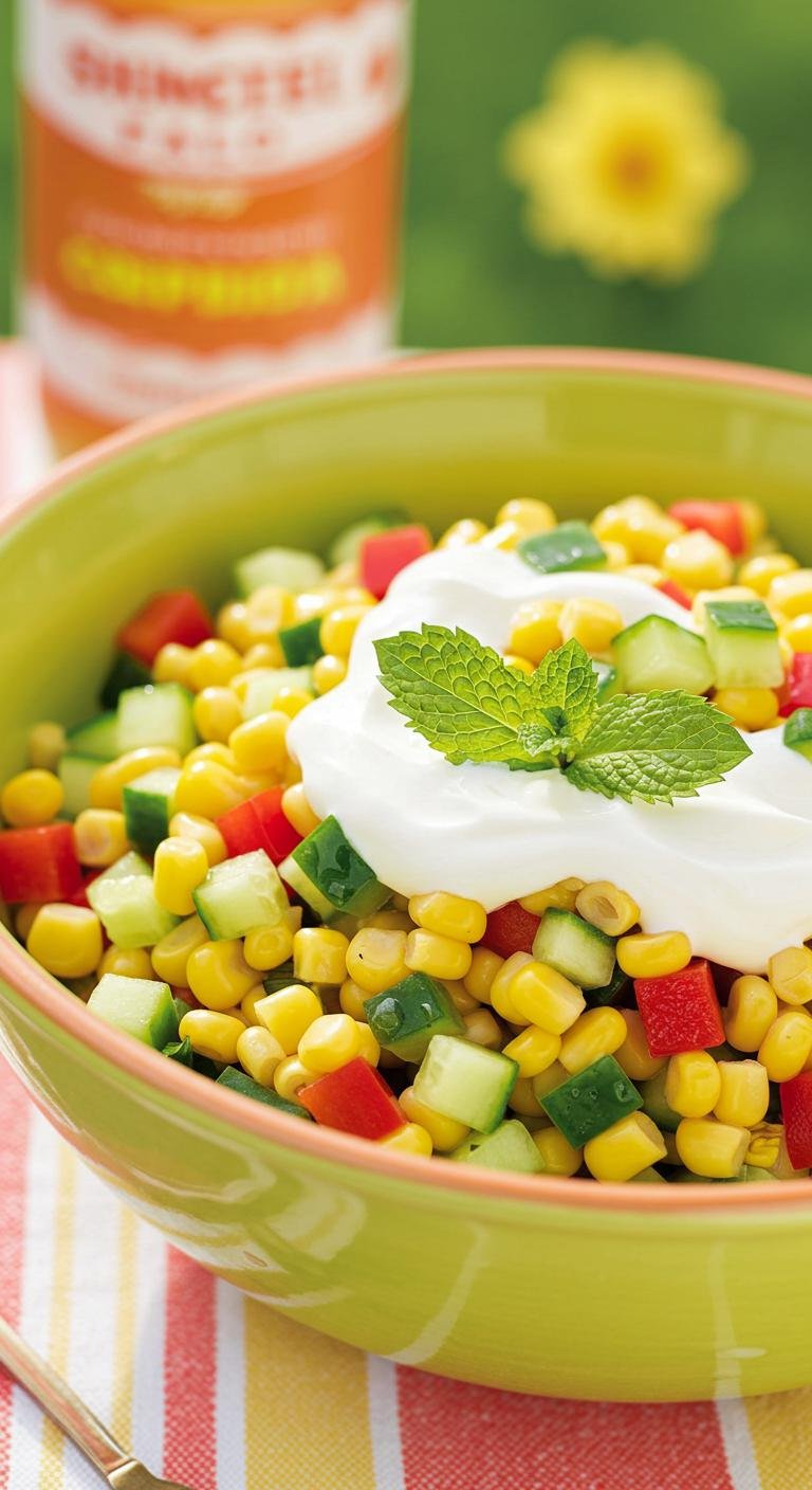 Corn, Cucumber, and Mint Salsa With Yogurt Drizzle