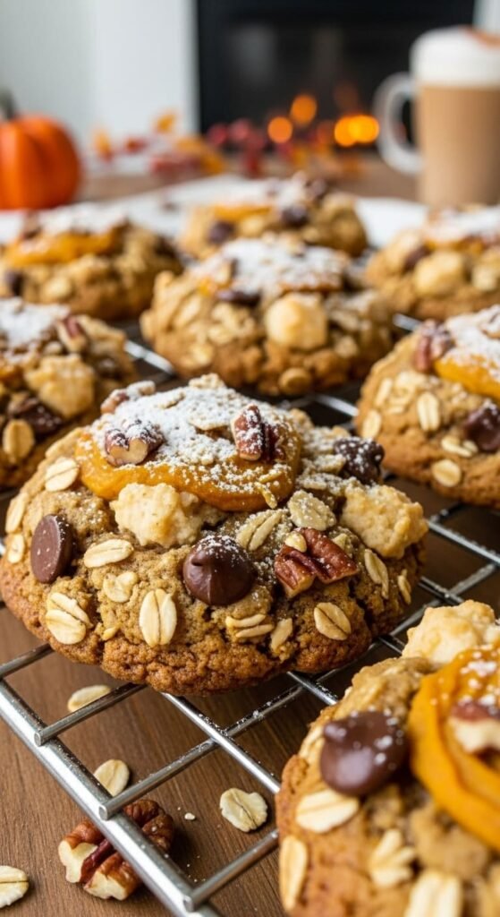 Coconut-Pumpkin Spice Cowboy Cookies — warm, chewy, and dusted with cozy autumn vibes.