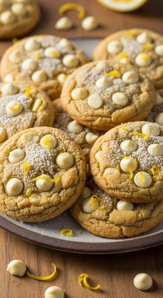 Bright, zesty cookies with a buttery chew and pops of tart lemon balanced by sweet white chocolate.