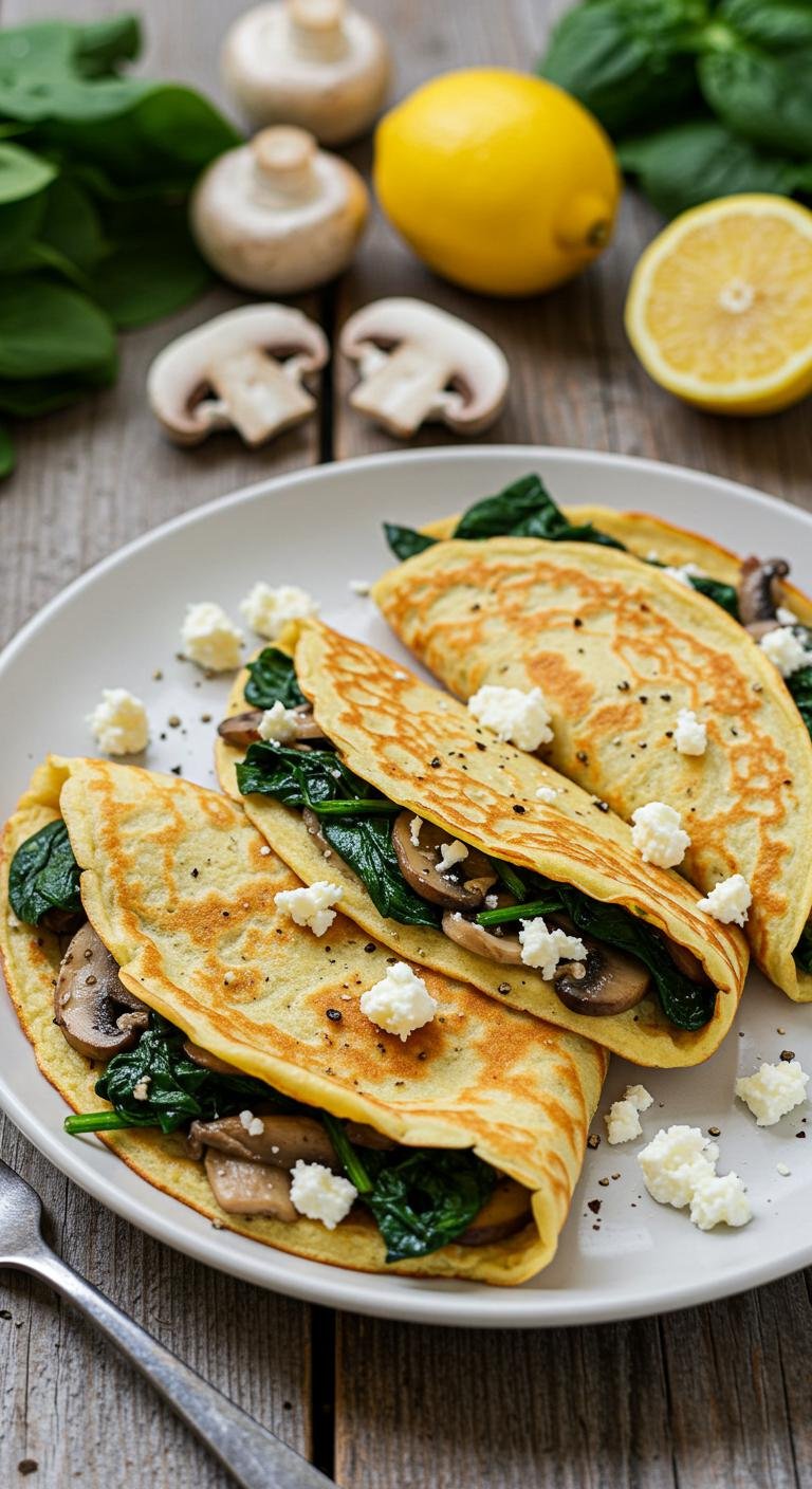 Spinach, Feta, and Mushroom Crepes — savory, quick, and perfect for weeknight dinners.