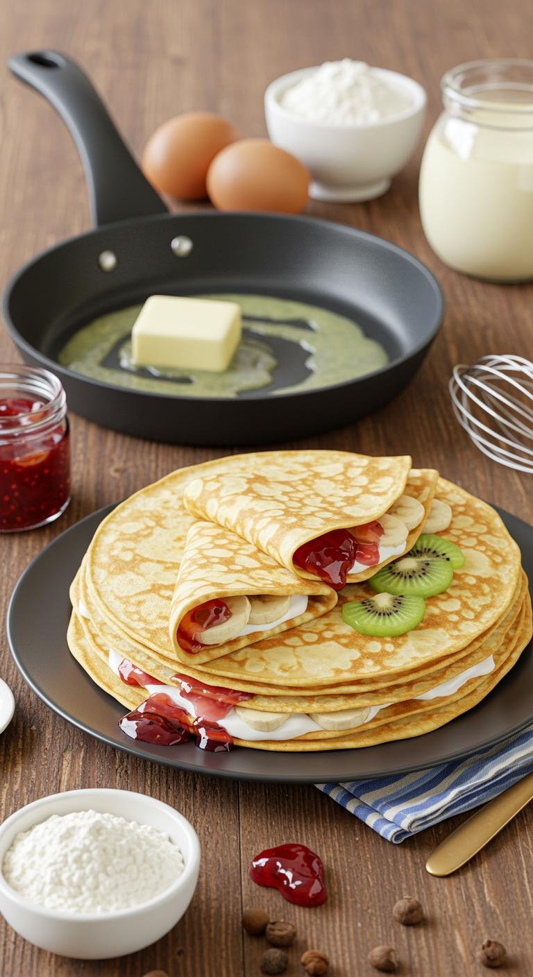 - Let the batter rest 10–15 minutes if you have time (helps make tender crepes).