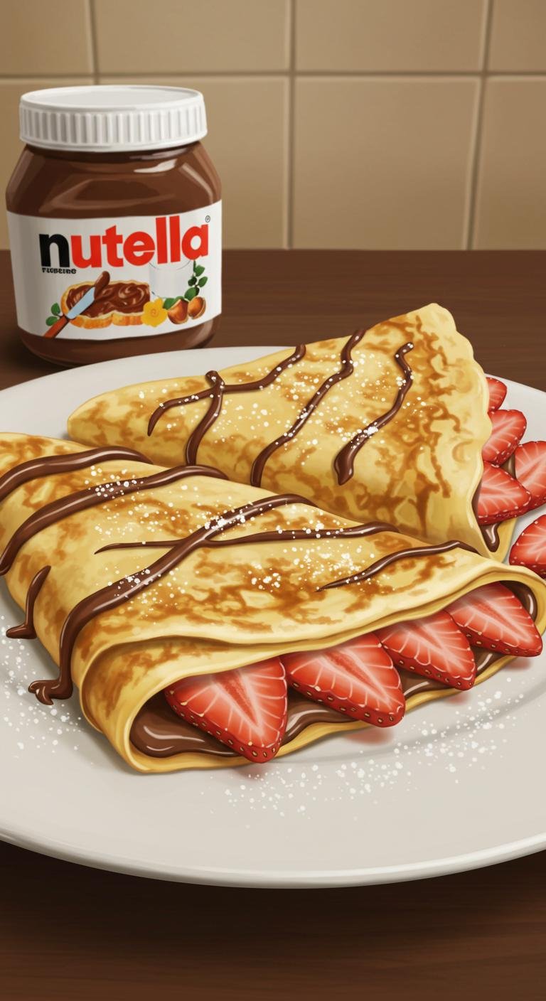 A sweet, gooey crepe filled with Nutella and fresh strawberries — simple, fast, and totally indulgent.