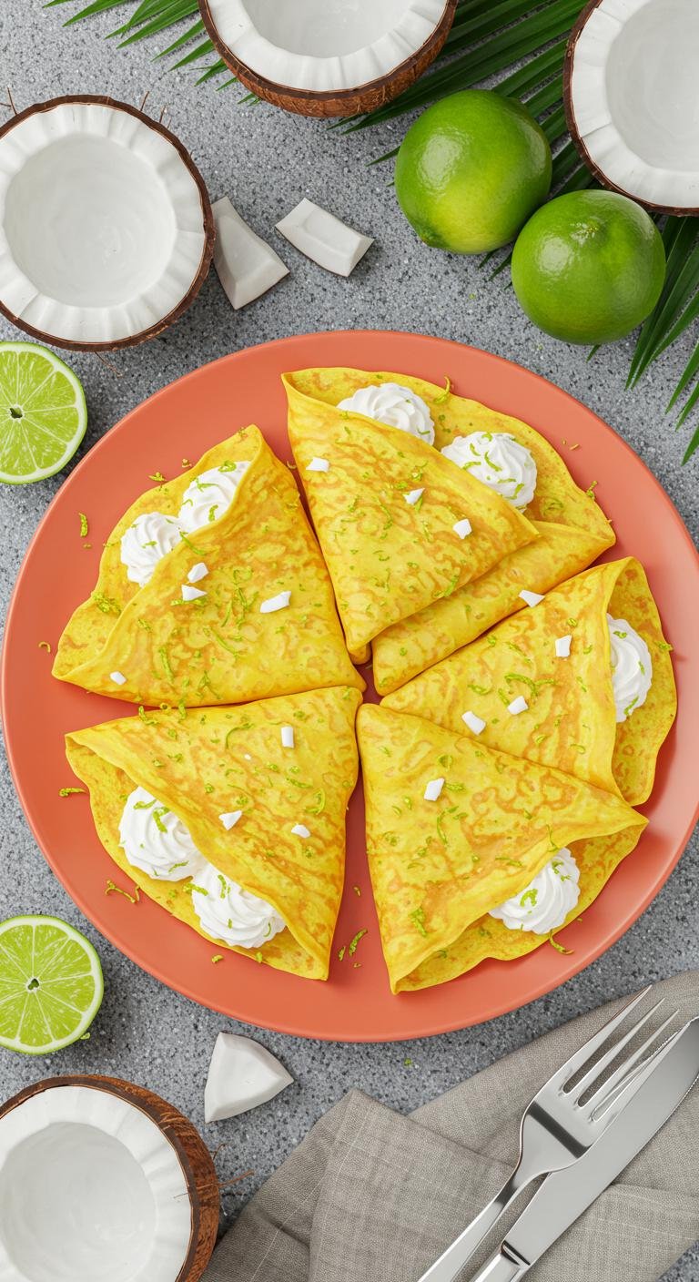 Bright, tender crepes with a tropical coconut-lime twist — light, zesty, and perfect for breakfast or dessert.
