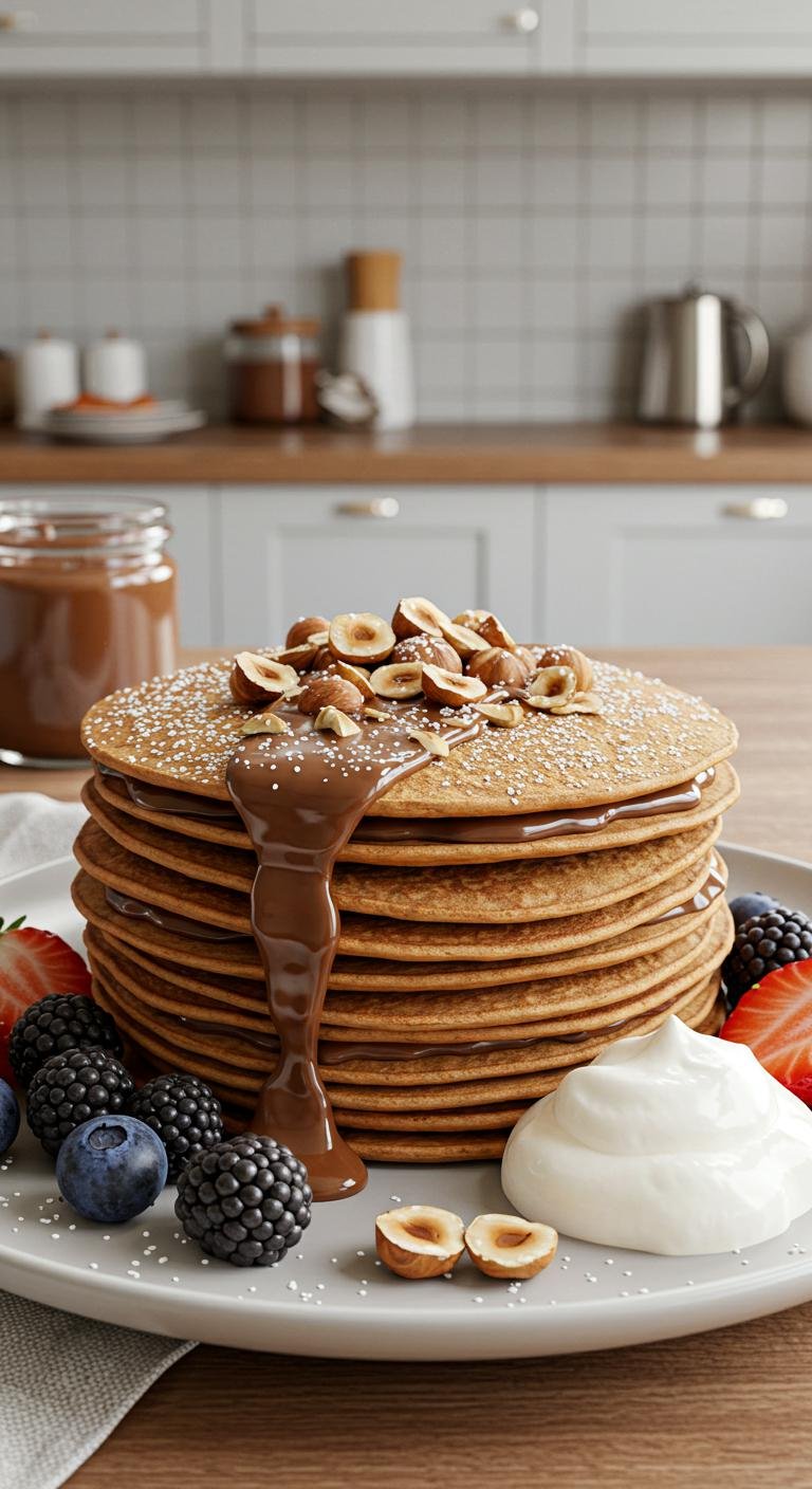 - Spread a thin layer of warm chocolate-hazelnut spread over each crepe, sprinkle with chopped hazelnuts if using, and fold or roll.