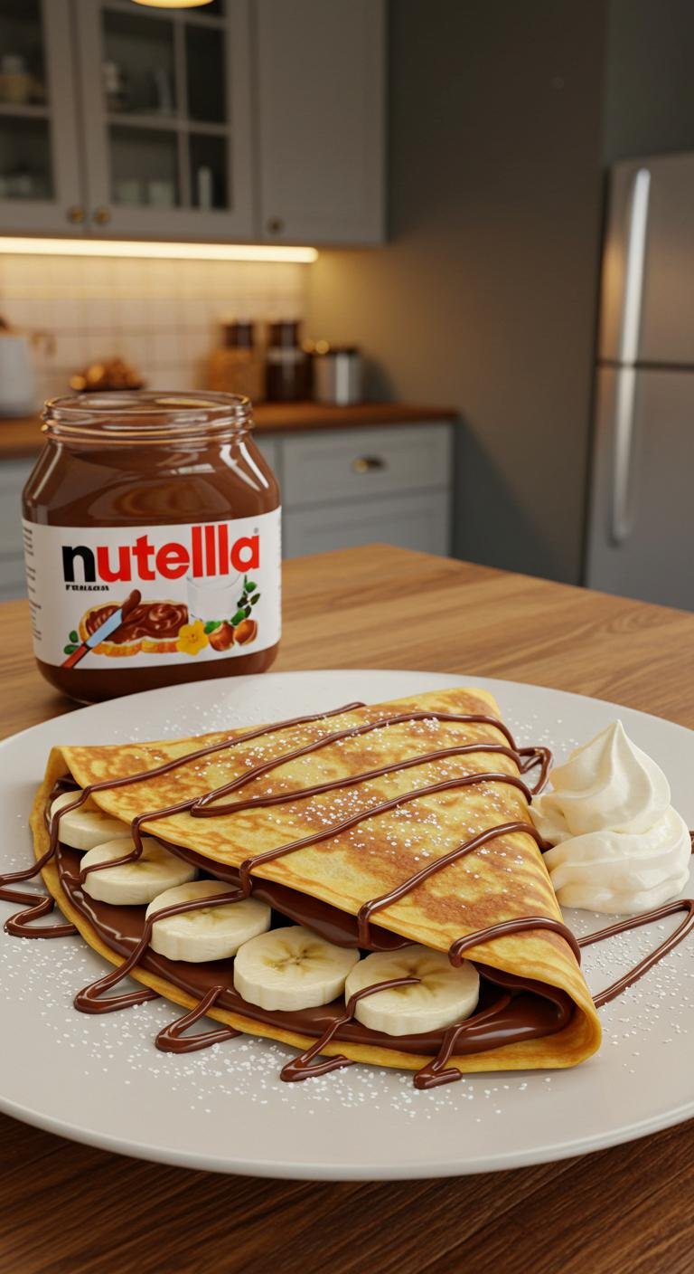 A sweet, gooey crepe filled with Nutella and bananas — perfect for breakfast or dessert in minutes.