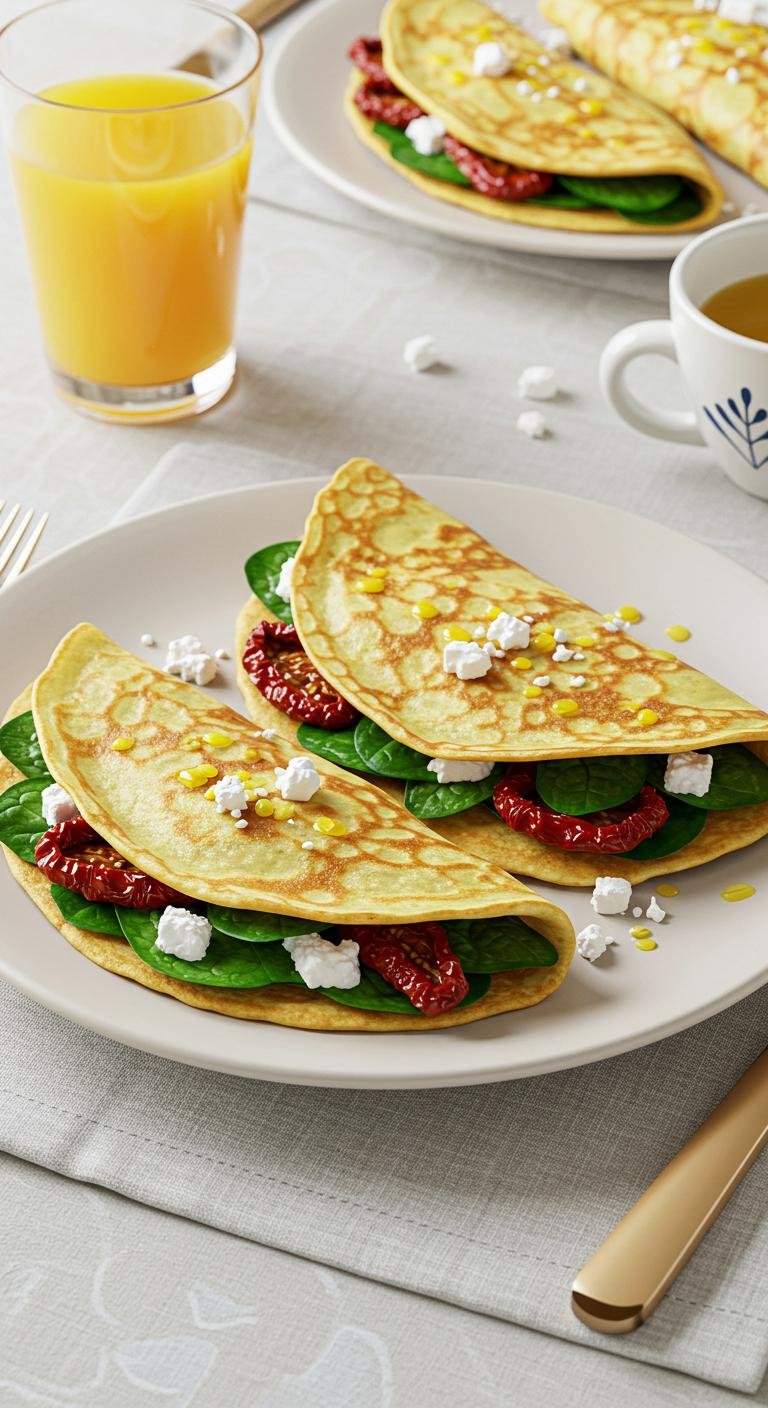 Fresh, savory crepes stuffed with spinach, tangy feta, and sun-dried tomatoes — perfect for a light lunch or elegant brunch.