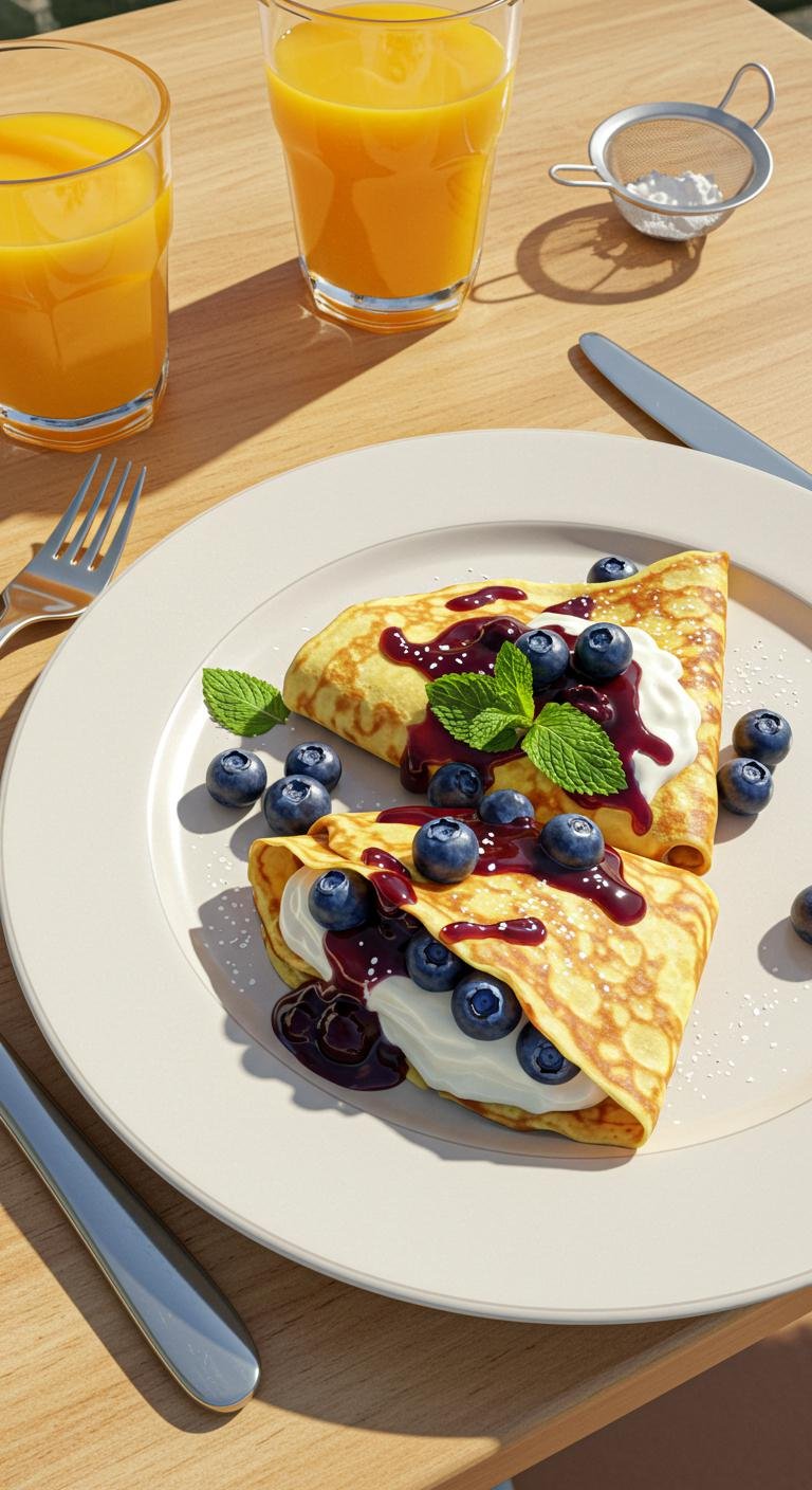Bright, creamy blueberry mascarpone crepes—perfect for a sunny brunch or sweet treat.