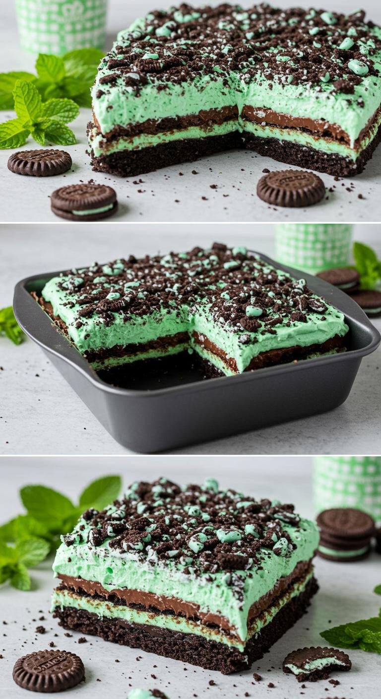A cool, minty twist on classic dirt cake studded with chopped Andes mints — creamy, chocolaty, and totally irresistible.