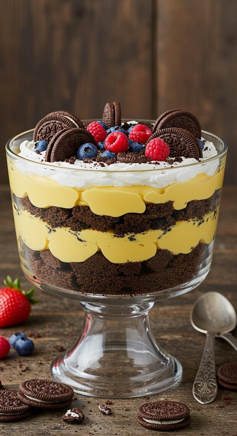 - Chill the trifle for at least 2–3 hours (overnight is best) so flavors meld and cookies soften slightly.