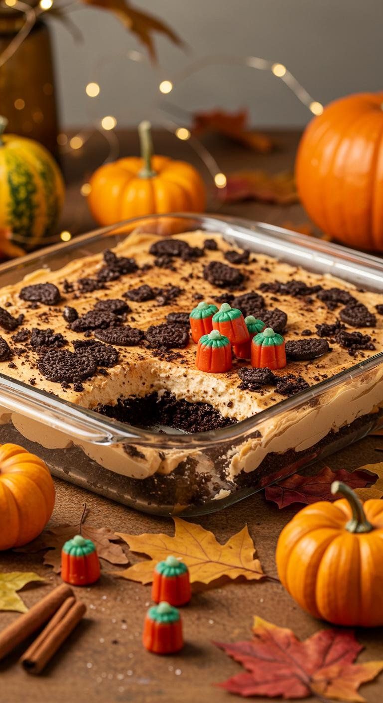 Perfect — here’s your Pumpkin Spice Dirt Cake for Fall.