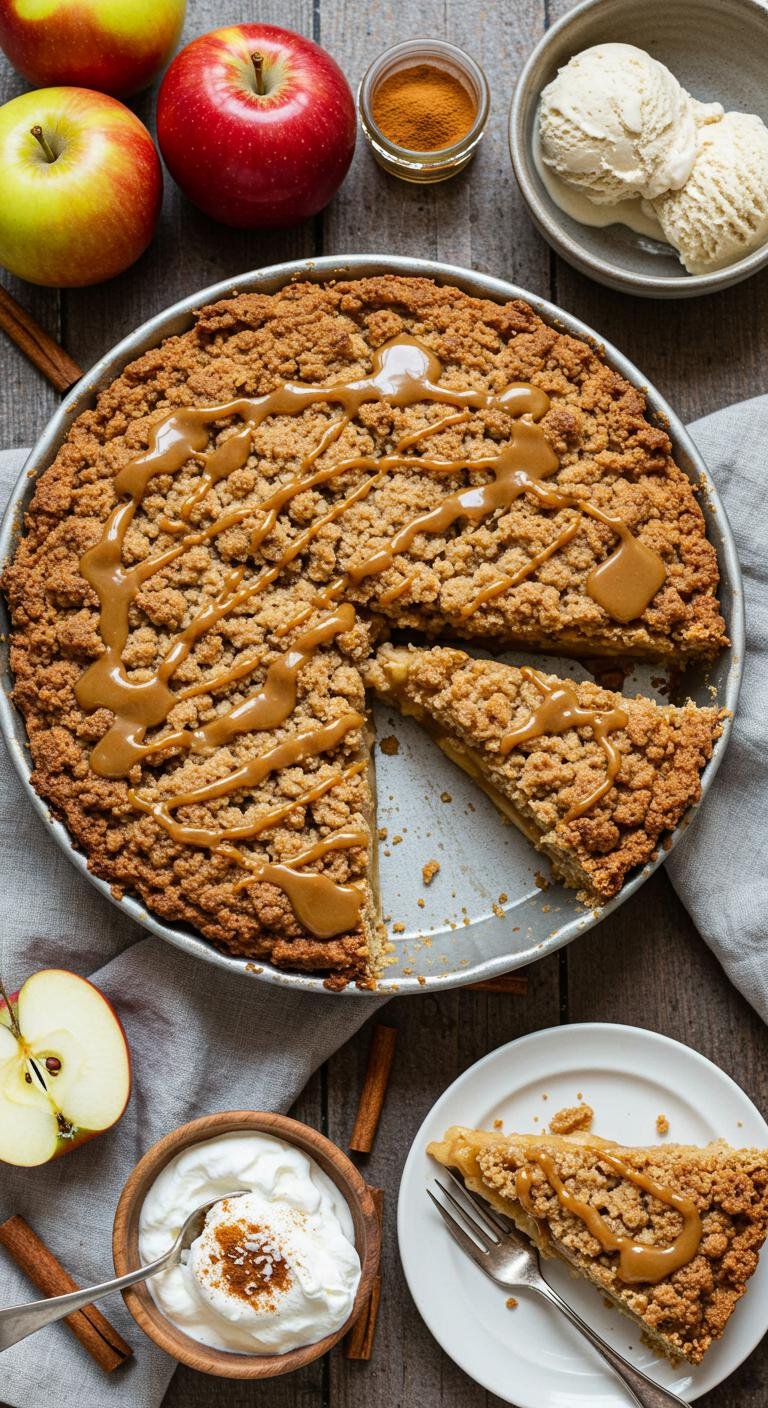 Warm, cinnamon-scented Dutch apple pie with a golden, crunchy streusel topping — pure comfort in every bite.