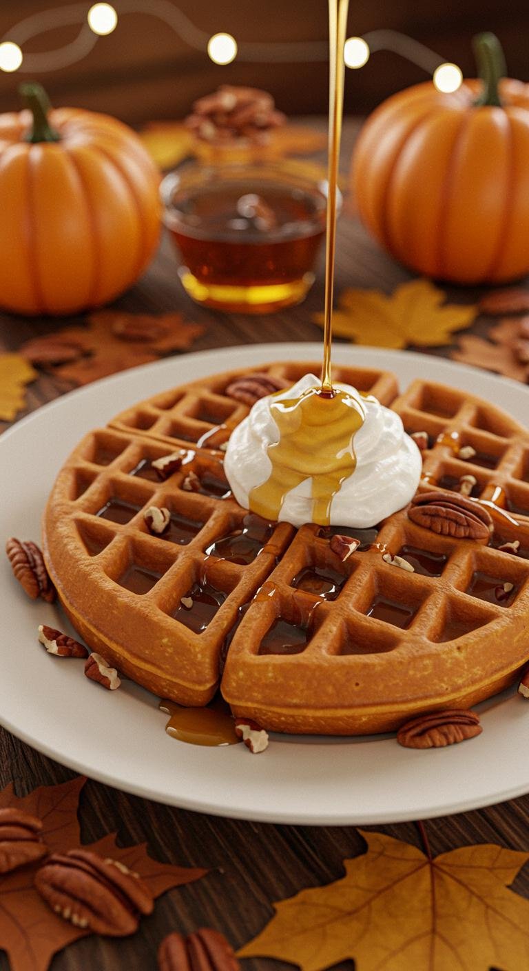 Enjoy every bite of these cozy, pumpkin-spiced waffles!