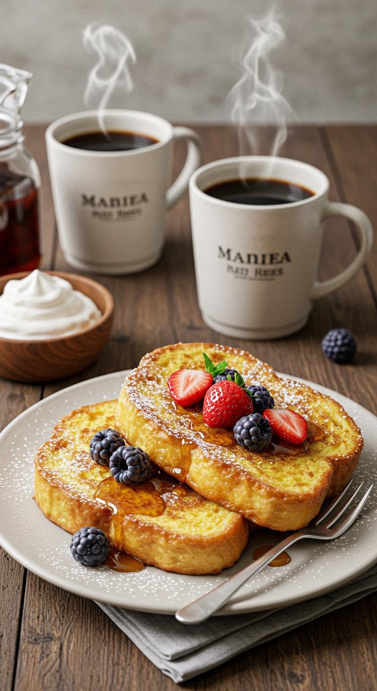- Optional toppings: maple syrup, powdered sugar, fresh berries, whipped cream