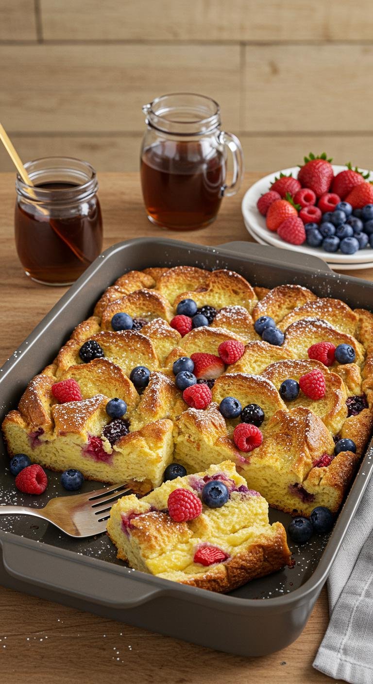 Brioche Berry French Toast Bake — rich, custardy, and bursting with sweet berries.