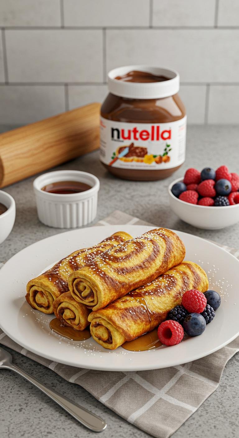 A chocolaty, gooey Nutella swirl wrapped in golden French toast—perfect for a playful breakfast or sweet snack.
