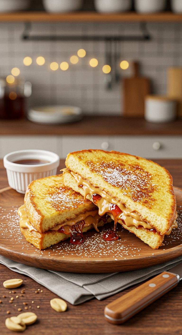 A gooey, nostalgic PB&J turned into a golden, crunchy French toast grilled sandwich.