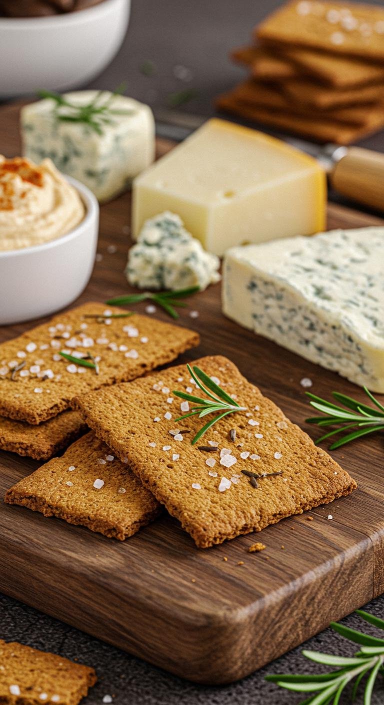 A crisp, herby twist on gingerbread — savory rosemary and sea salt crackers perfect for cheese boards or snacking.